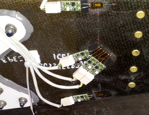 Todos los elementos estructurales principales (cuadernas, vigas, revistimiento están instrumentados. La mayoria de la instrumentación en la estructura fue introducida en la fase previa al ensayo de CFRP (fase de ensayos estaticos), cubriendo areas de interés tales como impactos y defectos.