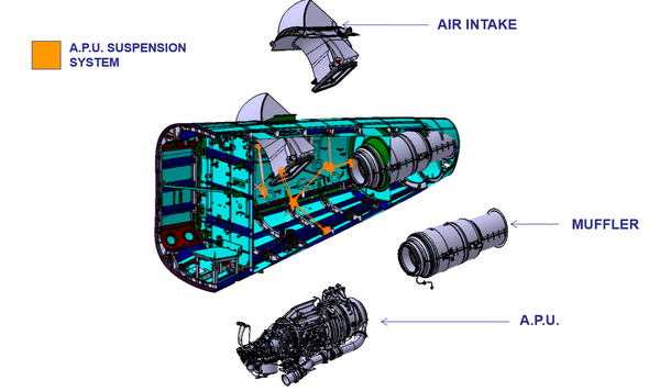 Los sistemas no están físicamente incluídos en el ensayo, pero los sistemas principales de la Sección 19.1 (Air Intake, APU y el Muffler) han sido simulados en el ensayo mediante elementos dummy. Estos elementos dummy comparten con la estructura las mismas interfaces que en el componente real, siendo estos actuadas con el fin de reproducir las cargas aplicadas a la estructura.