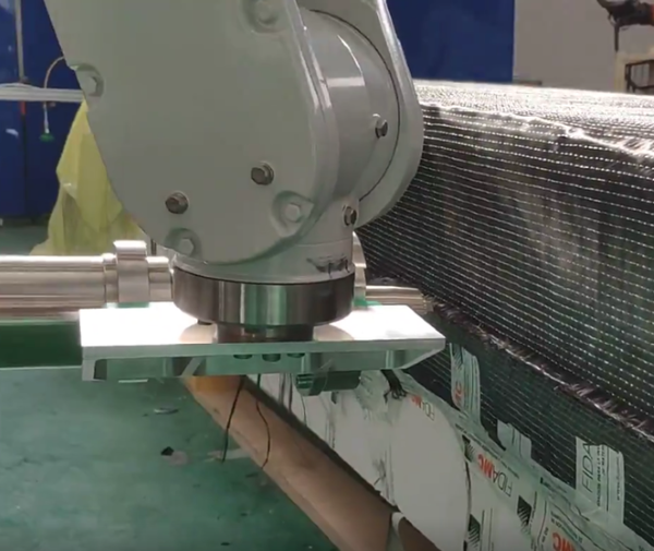Para el corte en 3D de una pieza de geometría no plana y con cambios de espesor del laminado es necesario que la compactación de las telas sea adaptativa a los cambios de espesor y de dirección. Esto se consigue mediante una pareja de rodillos de compactación acoplados a actuadores neumáticos independientes. Para curvaturas muy pronunciadas este sistema puede ser insuficiente.