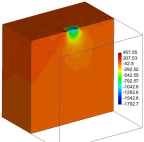 | Figure 16. Bulbs of vertical () displacements distribution (m). Half of mesh | |