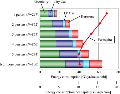 Figure 15. Energy consumption for hot water supply per household and per person Mizutani et al. (2006) . |