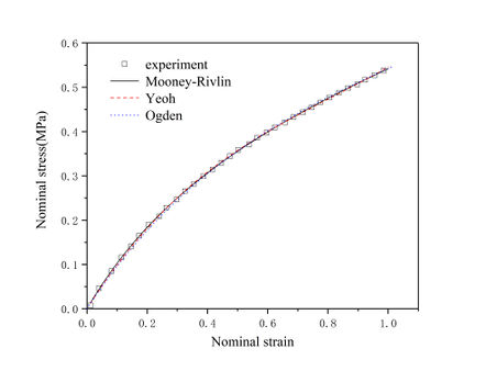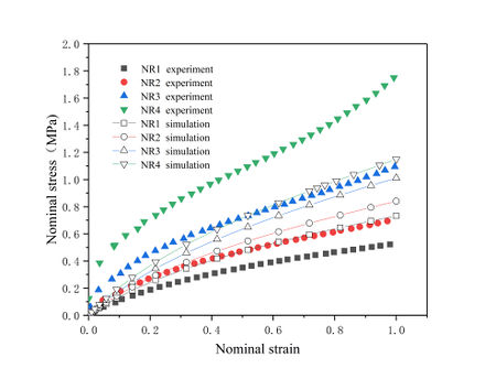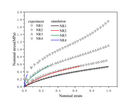 | Figure 4. Fitting results of constitutive model on NR1 tensile experimental data |