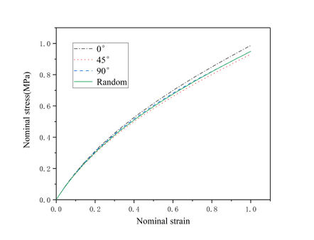 | Figure 12. Stress-strain relationship curves under different particle orientations |