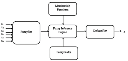 A fuzzy system ie. fuzzy logic unit (FLU) is composed of a fuzzifier, membership functions, a fuzzy rule base, an inference engine and a defuzzifier. The structure of the six-input-one-output fuzzy logic computing architecture used in this research is shown in Figure 2.