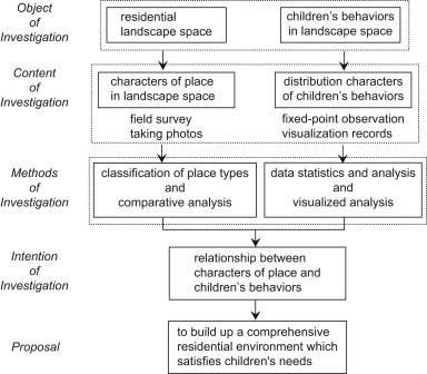 This research attempts to understand child behavior in response to their corresponding landscape space. Specifically, the effect of spatial elements in the selected residential areas on child behavior is clarified, and the process by which to create a comprehensive residential environment that satisfies childrens needs is explained (Fig. 1 ).