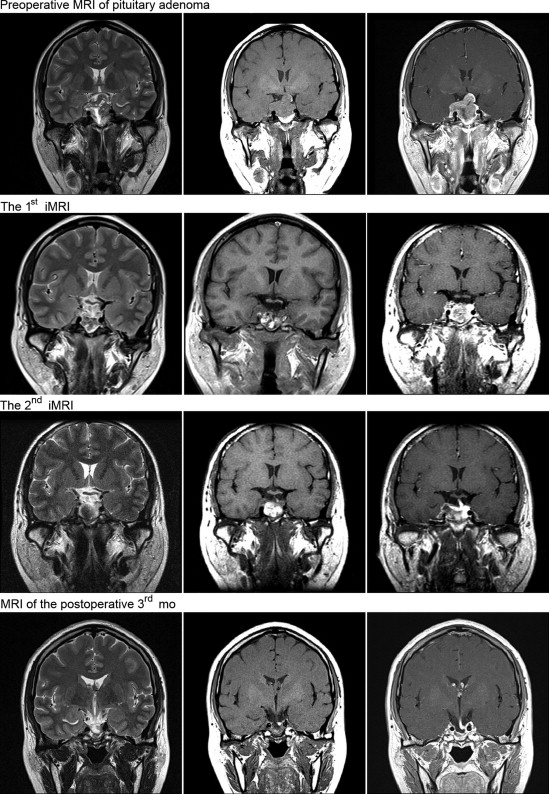 iMRI can effectively determine the resection extent of pituitary adenomas. In addition, it provides an objective basis for real-time judgment of surgical outcome, subsequently improving surgical accuracy and safety, and increasing the total tumor resection rate.