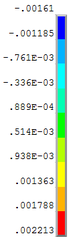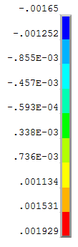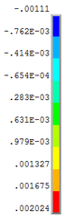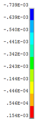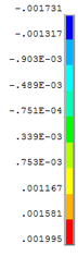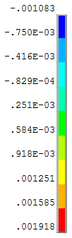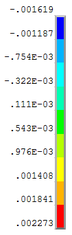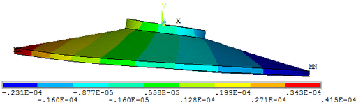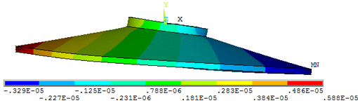 Na Figura 7, na qual estão plotados os deslocamentos verticais da sapata da torre (direção Y), observa-se a rotação da base da torre devido à flexibilidade da fundação.