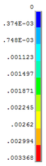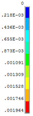 Percebe-se na Figura 10 que há um crescimento dos deslocamentos com tempo, mas isso ocorre até certo ponto (abaixo de 5 mm). Apesar das forças aplicada ao topo ser ressonante, as demais forças aplicadas ao longo do comprimento da torre não são, ou seja, há falta de sincronismo das forças excitadoras, o que impede que os deslocamentos cresçam infinitamente como é o caso quando tem-se todas as forças aplicadas ressonantes. Adicionalmente, a intensidade das forças transversais é baixa quando comparada com as forças postas na direção do vento do item anterior, de maneira a ter-se baixa intensidade de deslocamentos no caso estudado nesta seção.
