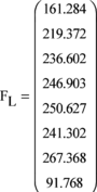 O vetor de amplitudes das forças transversais de sustentação , que têm o efeito do desprendimento de vórtices de von Kárman, com n = 8, é dado por: