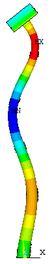Na Figura 5 têm-se as representações gráficas dos modos de vibração descritos acima. Para os modos de vibração flexionais e torcionais, em que se tem deslocamento/rotação preponderante segundo um determinado eixo, os deslocamentos modais foram plotados segundo o respectivo eixo coordenado, a saber: translação em X para o 1º, 3º, 8º e 16º modos; translação em Z para o 2º, 4º, 9º e 18º modos; e, rotação em torno de Y para o 7º e 17º modos. Adicionalmente, para os modos de ovalização (5º, 6º, 10º, 11º, 12º, 13º, 14º e 15º), plotaram-se o módulo vetorial dos deslocamentos translacionais, uma vez que, nestes modos, têm-se deslocamentos pronunciados em todas as direções coordenadas.