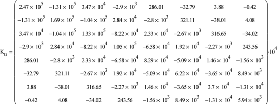 nas quais: é a matriz de massa consistente da estrutura no referencial global de coordenadas, a qual recebe essa denominação de consistente, uma vez que, as matrizes de massa dos elementos finitos são obtidas utilizando-se as mesmas funções de forma que gerarão a matriz de rigidez dos elementos finitos [12-14]; é a matriz de rigidez tangencial da estrutura no referencial global de coordenadas; e, é o vetor de funções temporais das reações de extremo fixo da estrutura no referencial global de coordenadas.