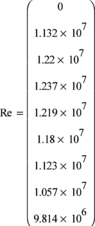 na qual: é o número adimensional de Reynolds; é a velocidade do fluxo de vento; é o diâmetro externo do tubo da torre; e, é a viscosidade cinemática do fluido, que, neste caso, é igual a 70000-1 m2/s para o ar [22]. Para o perfil de velocidades média do vento em relação ao nível geral do terreno, o vetor de número de Reynolds para torre com n = 8, fica: