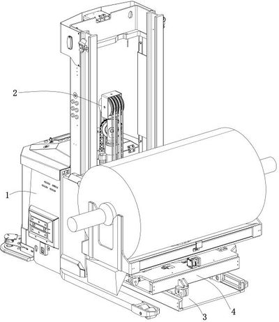 | Figure 1. Structural diagram of AGV (1-forklift body, 2 -lifting system, 3-lifting platform, 4- docking mechanism) |