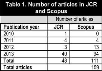 Initially, the search equation «mooc» or «MOOC» or «massive open online course» was used in both JCR and Scopus databases. With the initial information from both databases, a total of 63 publications in JCR and 180 in Scopus were retrieved, and they were finally reduced to 48 and 111, respectively, by removing books, books chapters, repeated records, irrelevant publications, conference proceedings, and documents that did not fit the purpose of the study or were out of the 2010-2013 interval. We used the automated mechanisms for analysis included in both databases, with representation in figures and tables. Data extraction was performed by direct consultation of the databases according to the following variables: