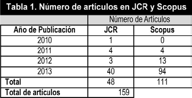 Estos 159 artículos se han distribuido de forma heterogénea entre los diferentes cuartiles de las bases de datos. La mayor publicación de artículos en ambas bases de datos se concentra en el año 2013 (13484,27%) como se puede observar en la tabla 2 (véanse las siguientes tablas en el Repositorio Figshare) (http://goo.gl/8qSMRA). Asimismo, es significativo el incremento del número de citas de los artículos en ambas bases de datos desde el 2010 pero continua siendo muy baja su incidencia como se puede observar en la tabla 3 (http://goo.gl/Qu2B57), ningún artículo alcanza más de 5 citas en JCR y Scopus. La tabla 4 (http://goo.gl/6u0Jia) muestra la evolución de citas distribuida por meses. Se puede comprobar cómo se ha ido incrementado desde la segunda mitad del año 2013 significativamente el número de artículos publicados a medida que el movimiento MOOC generaba más interés y datos. El año 2013 concentra casi la totalidad de las citas del intervalo (84,27%). La tabla 5 (http://goo.gl/qWNpdX) muestra que el promedio de citas en estos tres años se ha incrementado sustancialmente. El año 2013 el promedio de cita fue 3,33 en JCR y 7,83 en Scopus lo que triplica y sextuplica respectivamente los índices de cita del intervalo 20102012. A pesar de este incremento, todavía representa un índice muy bajo con respecto a la difusión de artículos MOOC en la literatura divulgativa en red (Google Scholar recoge 2.125 citas sobre MOOC en el mismo intervalo de tiempo).