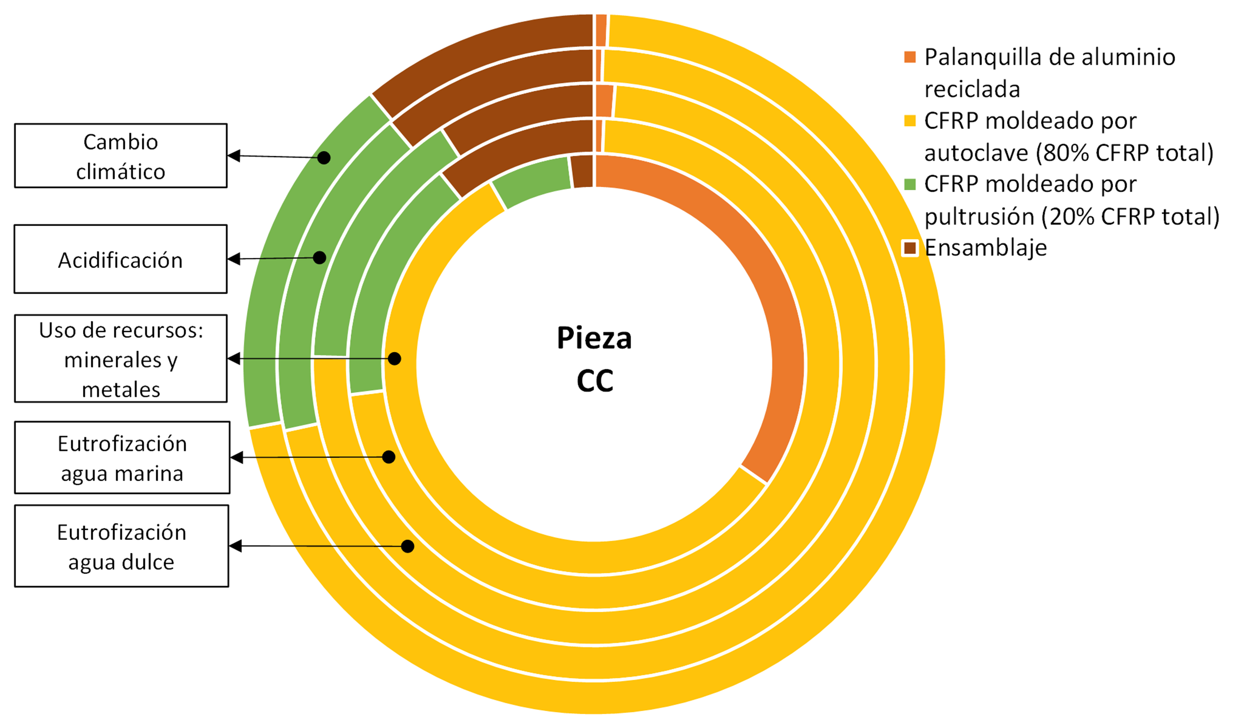 La unidad funcional en este caso en un kilogramo de CFRP producido por moldeo por pultrusión o por autoclave (en estos cálculos, se incluye el impacto de obtener CF). Se estudian solo estos dos tipos de proceso porque son los utilizados para fabricar la CC.