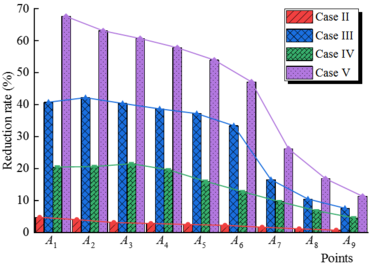 | Figure 9. Reduction rate of horizontal displacement in Cases II-V |