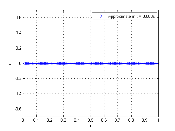 To perform the first iteration, it is necessary to know the solution in two previous time steps and . To start the process, is given by the initial setup while is given in Burden and Faires [4], by