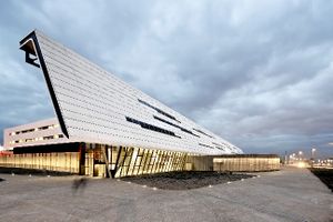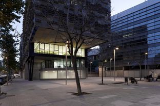 El edificio se sitúa en el barrio de Sant Martí del ensanche Barcelonés, en la zona rebautizada hace unos años como distrito de innovación 22@, próxima al barrio del Poble Nou, en dónde históricamente se concentró gran número de industrias, y que ahora está en pleno proceso de reconfiguración. Una de las peculiaridades de este emplazamiento es justamente un factor decisivo en los resultados energéticos del edificio: disponer de conexión a la red de DHC (District Heating and Cooling) Districlima, que le suministra tanto frío como calor obtenido a base de fuentes energéticas de bajo impacto. La sede de LEITAT, además de acoger su programa interior, también genera un nuevo espacio urbano, una plaza parcialmente cubierta, resguardada bajo el gran voladizo que forma el propio edificio. Esta plaza conecta la calle con el patio de manzana y genera un espacio protegido de encuentro y de estar. Varias premisas guían el proyecto, y una de las centrales es la voluntad de construir un edificio industrializado con técnicas reversibles hasta el máximo razonable, con elementos prefabricados / industrializados y con uniones reversibles lleva incorporado un alto nivel de exigencia en lo que respecta a precisión, rigor y limpieza conceptual. Se busca hacer factible el montaje en seco y el desmontaje completo del edificio para, en caso extremo, volverlo a construir en otro emplazamiento. El ahorro en materiales se aborda haciendo trabajar el mínimo de elementos y materiales asignándoles a cada uno de ellos el mayor número de funciones asumibles dada su naturaleza. Por ejemplo, las losas alveolares de hormigón armado pretensado que forman los forjados no solo cumplen su función estructural, sino que cumplen tres funciones más. Dada la gran masa de estos elementos se aprovecha su inercia térmica como depósito de energía calorífica, para estabilizar la temperatura de los espacios interiores. Para cumplir con la máxima eficiencia esta misión las losas se dejan completamente expuestas al ambiente interior, formando por lo tanto el acabado visible de gran parte de los techos. Además, su particular geometría con alveolos interiores en forma de tubos rectos, permite aprovecharlos para realizar a través de ellos parte de la canalización del aire de retorno y recirculación dentro del sistema de climatización. Cada losa, por lo tanto, se aprovecha simultáneamente como estructura, acabado, depósito de energía térmica y conducción de aire de retorno. La fachada es uno de los elementos diferenciadores de la propuesta, ya que es en ella en dónde se resuelven varios de los temas clave del edificio. Se trata de una fachada ventilada, con la hoja exterior situada a 60cm de la hoja interior. Este amplio espacio ofrece dos ventajas.