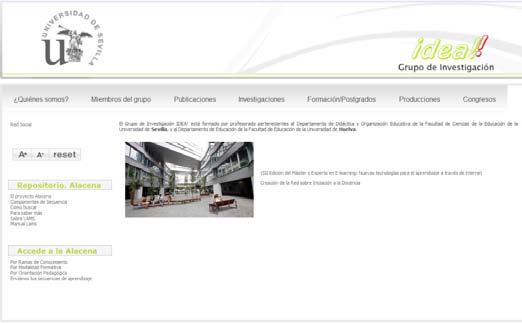 Tras ello, todos los diseños del aprendizaje fueron editados en formato HTML para ser publicados en la web y desarrollados con la herramienta LAMS. Se procedió, seguidamente, a la creación del repositorio en la propia página web del grupo de investigación http://prometeo.us.es/idea.