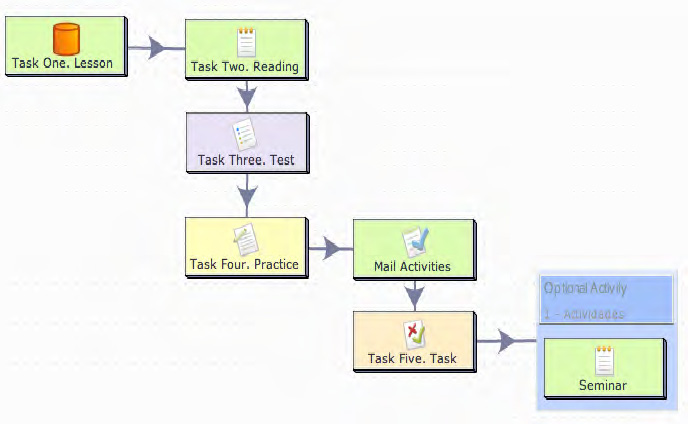 5) A LAMS sequence, the image that represents the development of the sequence in the LAMS tool, taken in its own environment. It will soon be possible to download designs developed in and exported from LAMS to be reused. It is sufficient to mention that «Learning Activity Management System» (LAMS), is an open source piece of software, which allows a university teacher to design as well as put into practice online learning activities, and which represents a sequence of activities illustrated visually in the form of a diagram that is easy to interpret (Agostinho, 2008).