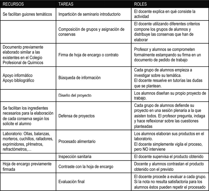 Our role as teachers will involve long hours of designing and preparing learning activities and situations or scenarios that allow active and cooperative learning, where the development or execution of the complex actions that constitute each competency take place, rather than preparing and imparting the disciplinary contents of our specialty (De la Cruz Tomé, 2003; Kiss & Castro,2005). It should be remembered that adopting a teaching approach that guides students in their learning also means taking on the role of a facilitator who should respond to the needs of the group and of particular students (Borthwick, Bennett, Lefoe, & Huber, 2007).