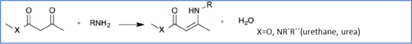 La introducción de un enlace vinílico insertado entre el nitrógeno donador de electrones y un grupo aceptor de electrones confiere reactividad de tipo Michael con alta resistencia a la hidrólisis. La reacción de intercambio puede proceder sin catalizador a 100 °C o superior a través de la vía de adición de Michael. El ataque nucleofílico es realizado por un grupo de amina libre. Los tiempos de relajación disminuyen sustancialmente a medida que el grupo "X" se vuelve menos electronegativo (amida → uretano → urea).