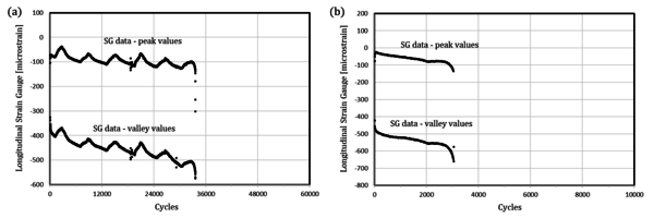 SG signal data also obtained for the other two configurations (Figure 9) corroborate how by monitoring the backstrain it is possible to predict the gradual onset of joint failure at different severities of the stress state in the bondline.