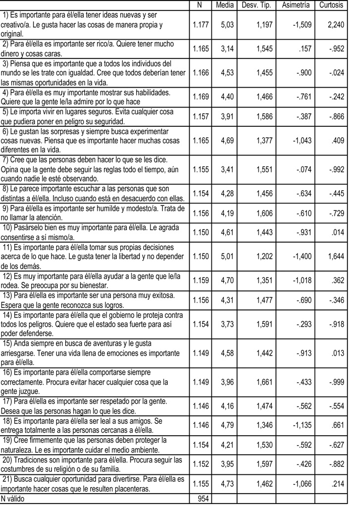 Sin embargo, tanto el valor poder que se define como la persona que valora el estatus social y el prestigio, así como el control o dominio sobre la gente y los recursos, como el de conformidad que se define como la persona que se caracteriza por su moderación en las acciones, inclinaciones e impulsos que pueden disgustar o herir a otras personas y violar las expectativas o normas sociales, han sido los dos que obtienen las medias más bajas. El valor poder es, también, un valor individualista; mientras que el de conformidad es colectivista y se refiere a una persona excesivamente convencional o preocupada por cumplir las expectativas de los demás.
