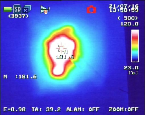 En las figuras 10, 11, 12 y 13 se pueden observar los resultados de las inspecciones de ultrasonidos y las temperaturas máximas alcanzadas en los impactos de nivel zona 2A en los paneles T1 y T3.