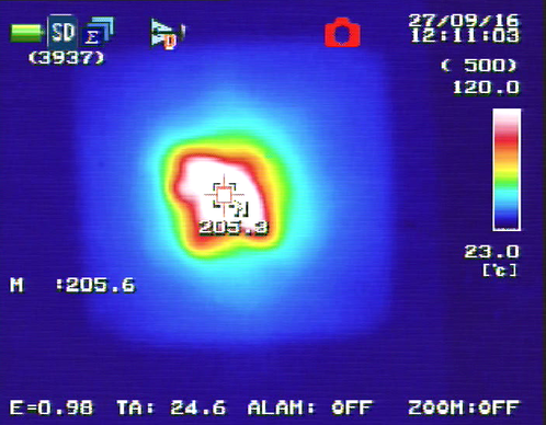 Los ensayos se han realizado en un laboratorio calificado y los parámetros que se monitorizan durante el ensayo son los de las formas de onda (pico de corriente, carga transferida, voltaje y tiempo) y la temperatura máxima alcanzada en la cara interna del panel con una cámara termográfica.