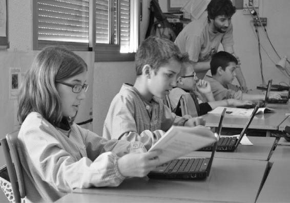 The school chosen for the study is a public primary school which does not use traditional textbooks. 14 students were involved in this study, 11 and 12 year olds. They are all Catalan speakers. All students in the observed group had computers at home and all, but one, had Internet connection. In class, each student had a laptop with access to internet and user name and password to access the e-textbook online platform. The teacher in charge of the group has been in this school for five years and has been the school technology planning coordinator for three years. He is 29 years old and uses technology in his classrooms on a regular basis to teach mathematics, social sciences and language.