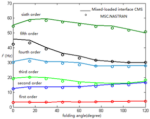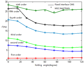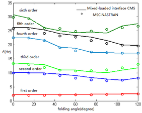 Therefore, this paper assumes that the inner wing is the master component, and the fuselage and outer wing are the slave components. Here, main mode of fixed-loaded interface is adopted for the master component, and the main mode and constraint mode of fixed interface are adopted for the slave component. Finally, the mixed-loaded interface component modal synthesis for folding wing with rigid connection is established.