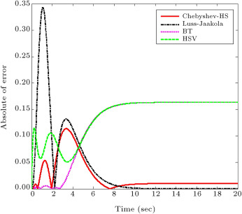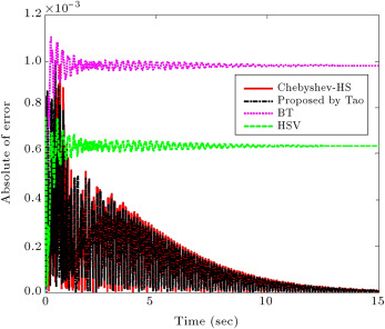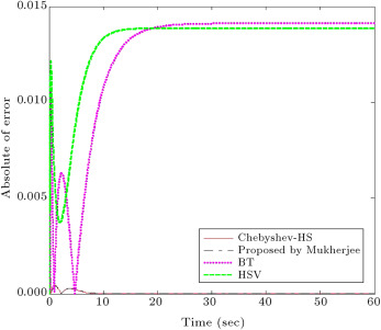 Also, the plot of is given for the full order and reduced systems in Figure 3 . This figure illustrates that the obtained error by the proposed method in this paper and the proposed method by Mukherjee is very similar, and less than HSV and BT methods.