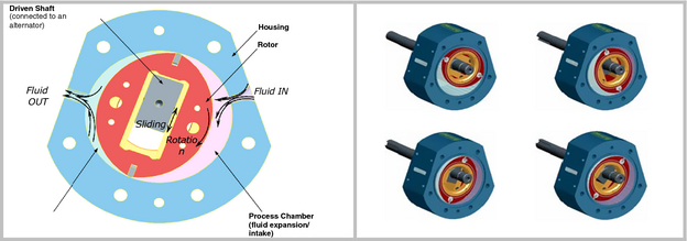That leaves screw, scroll, piston, vane, and rotary lobe expanders (e.g., Wankel). Of those, screw and scroll expanders exhibit modest performance in small-scale (typically below 55% isentropic efficiency) [5], and pistons show good performance (typically 75–85% isentropic efficiency), but at the cost of more complex valves and more moving parts than rotary lobe expanders. Vane expanders have not been explored thoroughly in this research but may suffer from lower efficiencies than other volumetric devices at high pressure ratios, or suffer from lubrication problems with steam [5,[5, 6]]. For those reasons the rotary lobe expander appears to be a good candidate for DCS-CHP if good pressure ratios and performance can be achieved with the desired working fluid.