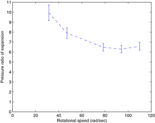 Figure 7. Pressure ratio of Katrix expander on compressed air (error bars indicate combined total accuracy). |