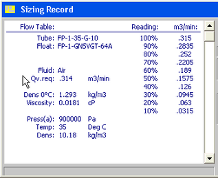 The rotameter was calibrated at the average upstream air pressure and temperature in each test run, using the ABB provided calibration software. An example of this calibration scale is shown in Figure 15.