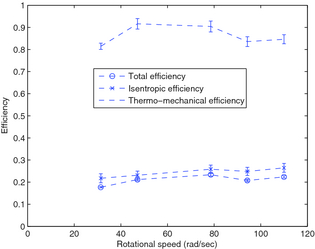 Figure 6. Efficiencies of Katrix expander on compressed air (error bars indicate one standard deviation). |
