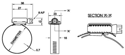 The stabilized FEM was applied to model the manufacturing of a hose-clamp band of AISI 409L steel (Fig. 5). The initial set-up of the tooling and band is shown in Fig. 6. A series of grooves are forged in the band by the roll passing over the band placed on the toothed punch. The band thickness is 0.7 mm and its width 8 mm. Plane strain conditions are assumed. Material properties can be found in Oñate et al. (2006).