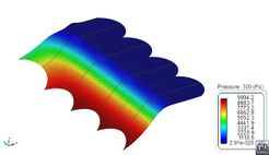 The software has been equipped with a new type of boundary condition in order to be capable of accounting for a pressurized free surface just like an aircushion. Figure 8 shows how the aforementioned aircushion model is easily implemented in the software interface.