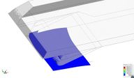 The boundary conditions for the stern seal include fixed constraints in upper part and rigid boundary constraints. The later simulate the mechanic contact between the upper and lower lobe. The boundary conditions for the bow seal are shown in the following picture.