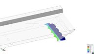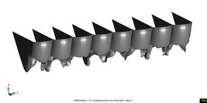 The contacts between the bow skirt stiffeners have been modelled as elastic contacts. This allows for a more realistic behaviour than considering the stiffeners stitched together and at the same time keeps the computational cost controlled.