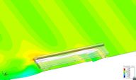 Comparing the values in Table 13 with Table 4 and Table 5, it is observed that loads induced by rigid seals working as planning surfaces are much higher that those induced by viscous friction. Moreover, these loads are much higher than any other component as speed increases. Therefore, the use of rigid seals seems not to be appropriate for modelling flexible seals. Figure 47 shows the pressure field induced on the finger of the bow seal located in the port side. Negative pressures indicate areas where pressure drops below atmospheric pressure. The free surface at those nodes cannot detach unless it is surrounded by, at least, one detached node, allowing the entrance of air.