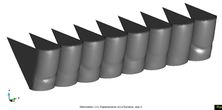 | Figure 66. Stern seals deformation sequence: t=1, 2, 3, 4 sec. (from left to right and top to bottom) for Fr=1.2. | |
