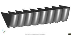 | Figure 66. Stern seals deformation sequence: t=1, 2, 3, 4 sec. (from left to right and top to bottom) for Fr=1.2. | |