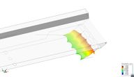 | Figure 66. Stern seals deformation sequence: t=1, 2, 3, 4 sec. (from left to right and top to bottom) for Fr=1.2. | |