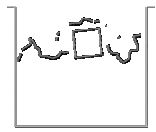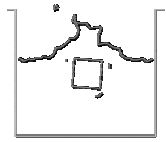 | Figure 24: Solid cube falling into a recipient with water. The cube is modelled as a very viscous fluid |