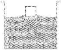 In the example of Figure 20 the motion of a fictitious rigid ship hit by an incoming wave is analyzed. The dynamic motion of the ship is induced by the resultant of the pressure and the viscous forces acting on the ship boundaries. The horizontal displacement of the gravity center of the ship was fixed to zero. In this way, the ship moves only vertically although it can freely rotate. The position of the ship boundary at each time step defines a moving boundary condition for the free surface particles in the fluid. Figure 20 shows instants of the motion of the ship and the surrounding fluid. It is interesting to see the breaking of a wave on the ship prow as well as on the stern when the wave goes back. Note that some water drops slip over the ship deck.