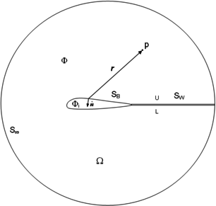 A rather different procedure is needed when computing the aerodynamic loads acting on thin panels. In this case, the gradient of the doublet strength provides the jump in the tangential velocity across the panel, i.e.