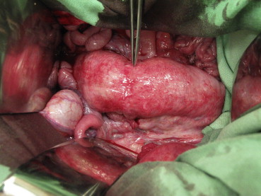 A median laparotomy was performed following standard aseptic preparation of the surgical field. A catheter was introduced into the urinary bladder through a small incision at the bladder apex and was secured in place with a circular suture to ensure the derivation of urine and management of diuresis throughout the operation. On completion of the procedure, the catheter was withdrawn and the incision closed with absorbable sutures (Vicryl, 3/0; Johnson & Johnson). The sigmoid colon was cut in its entire diameter. Circular monofilament sutures (Prolene 3/0; Johnson & Johnson) were placed on both ends of the disconnected intestine.